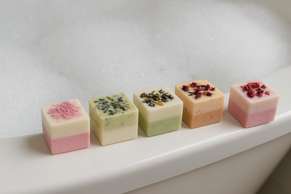 Elke cube is rijk aan natuurlijke boters en oliën, verrijkt met delicate bloemen en een heerlijke geurbeleving. Perfect voor één ontspannend badmoment.